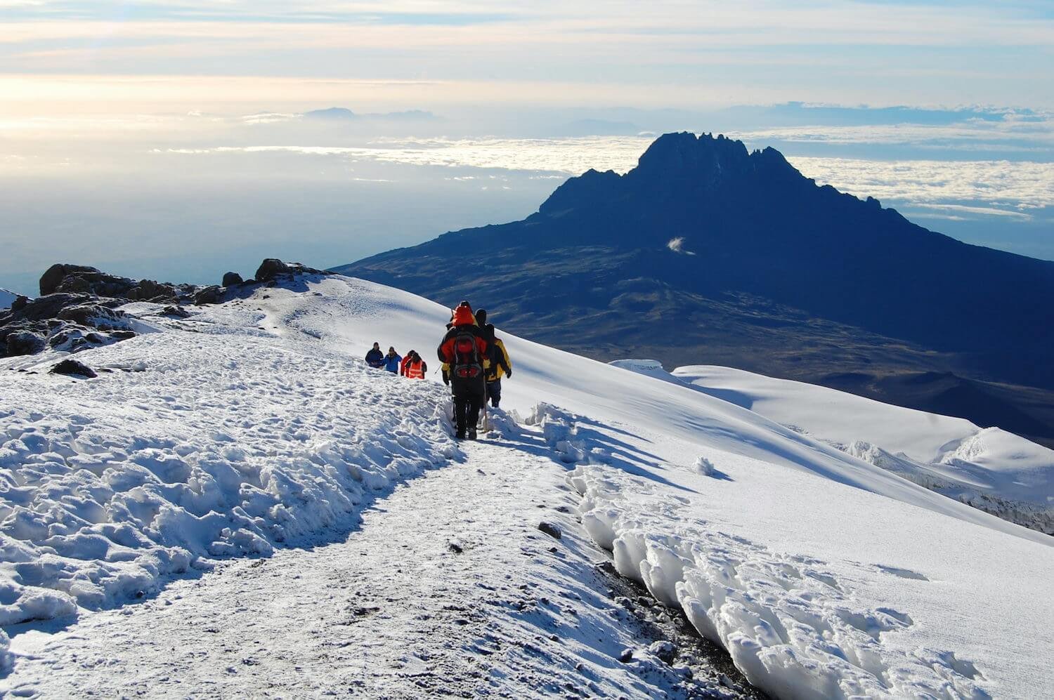Very early in the morning (around midnight), we begin our push to the summit. This is the most mentally and physically challenging portion of the trek. The wind and cold at this elevation and time of day can be extreme. We ascend in the darkness for several hours while taking frequent, but short, breaks. Near Stella Point (18,900 ft), you will be rewarded with the most magnificent sunrise you are ever likely to see coming over Mawenzi Peak. Finally, we arrive at Uhuru Peak- the highest point on Mount Kilimanjaro and the continent of Africa.
